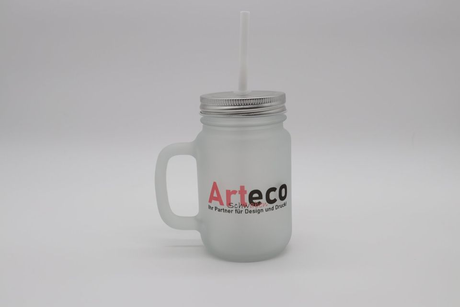 Trinkglas mit Schraubdeckel & Strohhalm – Komplettset